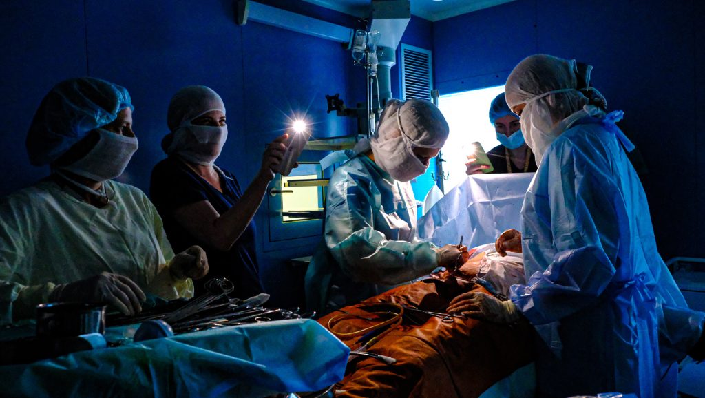 Even in its new location, the hospital’s functionality is often limited due to ongoing attacks on energy infrastructure. Dr. Olena Lazarieva, an intensive care anesthesiologist, describes how the hospital faces frequent blackouts: “Sometimes during my 16-hour shift, the power was on for 40 minutes, sometimes for an hour and a half.”[17] Without electricity, surgeries are postponed, and lifesaving equipment is at risk of failing: “If there are severe patients, if they need oxygen, artificial lung ventilation, without electricity, it can be bad,” says Dr. Lazarieva.[18] “When you hear an [air raid] alarm, you immediately think what to do – whether there will be a power outage, whether the oxygen station will work, what to do next during the surgery,” says another doctor at the hospital.[19] Physicians report that patients experience panic attacks and cardiac arrhythmia due to lack of power and face delays in surgery and other essential health care.