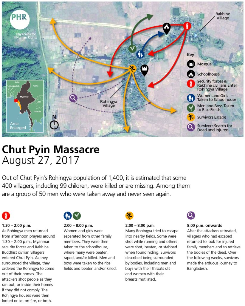 Based on the forensic examinations and the consistent and detailed testimony, as well as corroborating information from additional credible sources, PHR believes that the savagery inflicted on the people of Chut Pyin is a typical example of the widespread and systematic campaign that Myanmar authorities have waged against the Rohingya – acts that should be investigated as crimes against humanity.