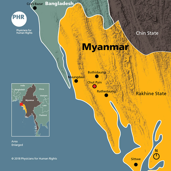 Physicians for Human Rights (PHR) has conducted three visits to Bangladesh since October 2017 to interview and carry out forensic medical examinations of Rohingya survivors of these attacks. This report focuses on the events that occurred in the village of Chut Pyin as an example of what happened in dozens of villages in Rakhine state: the Rohingya villagers faced a host of human rights violations, including killings; detentions and disappearances; physical assault involving beatings, stabbings, and mutilations; rape and other forms of sexual violence; and forced displacement in the form of looting and burning of homes.
