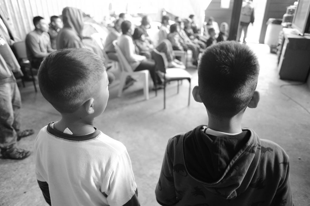 Honduran brothers Miguel, 9, (left) and Antonio, 8, (right) at a shelter for migrants in Tijuana. Antonio narrowly missed being killed by two men connected to organized crime who attacked his family with a machete in Honduras.
