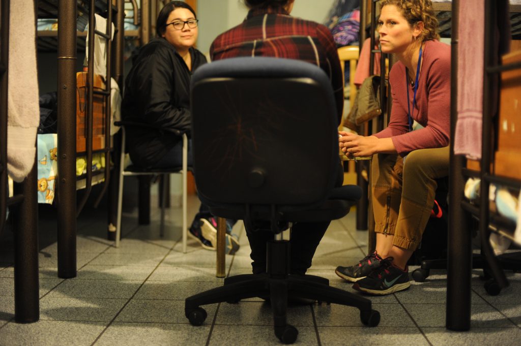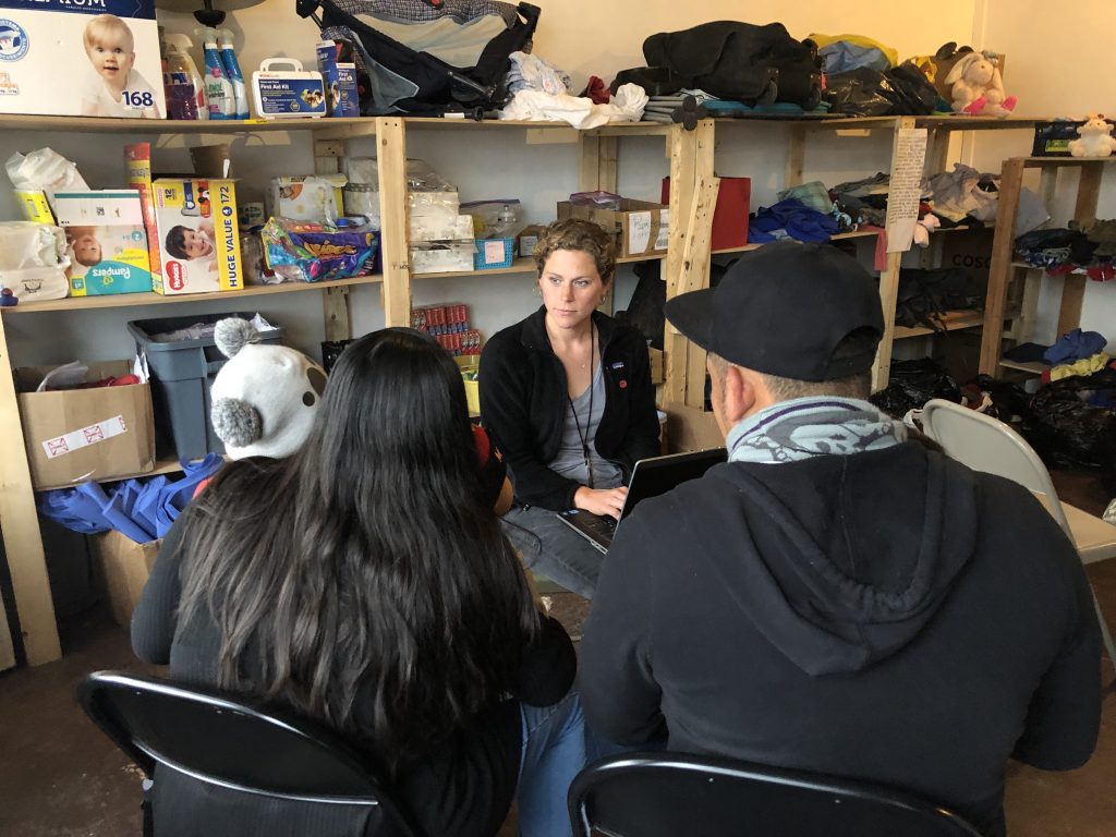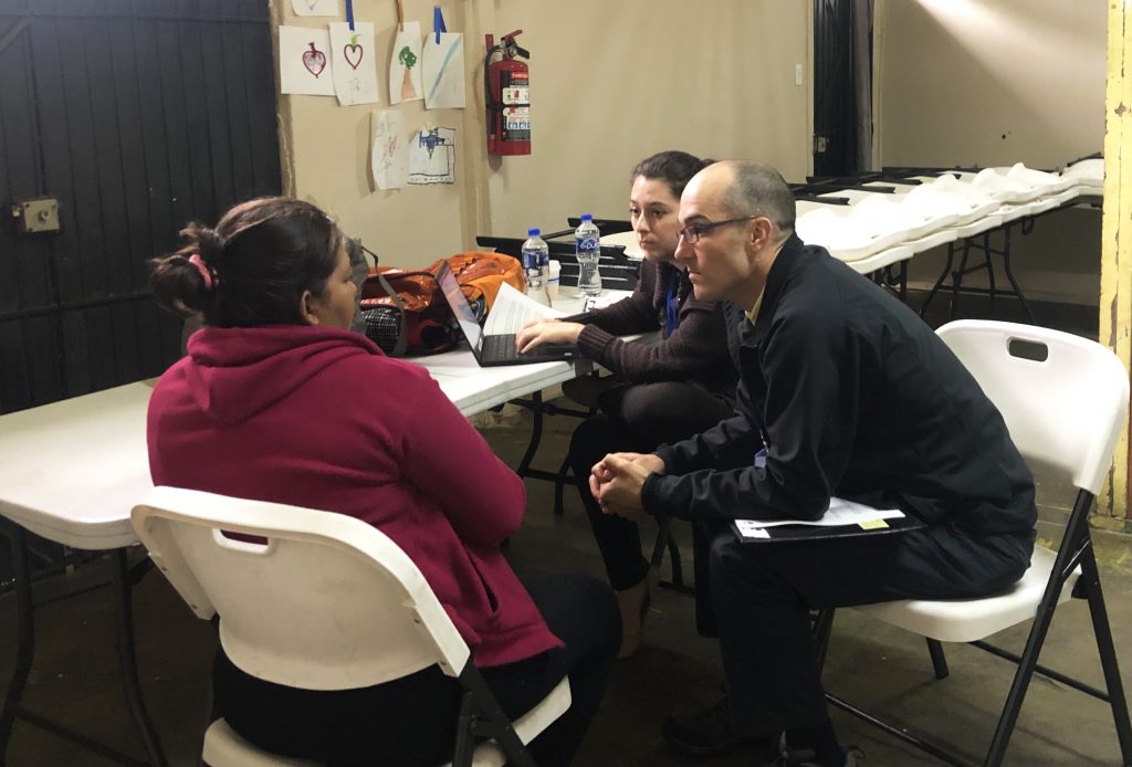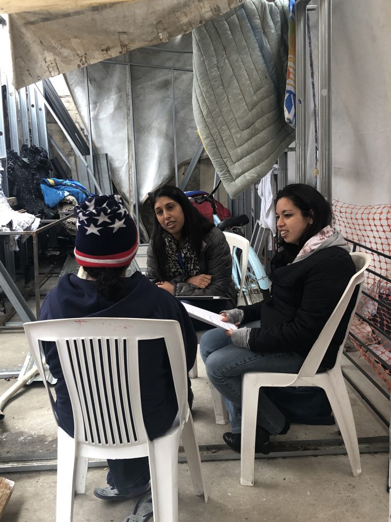 Romina (left) – speaking with PHR’s Adam Richards, MD (right) and clinical psychology student Janet Yanez (center) – fled Honduras with her family after they received death threats and were attacked by men wielding a machete. She still struggles with the trauma that she experienced.
