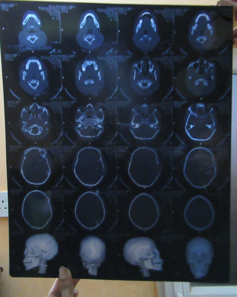 Although he could not express himself because of the injury, the staff surmised that Nassir had been at the sit-in from drawings he did of the navy headquarters and men wearing Rapid Support Forces (RSF) uniforms with their trademark red hats. Nassir experienced severe episodes of post-traumatic stress and would get scared when anyone came into his hospital room, covering his face to hide from the volunteers. His symptoms improved with antidepressants; however, because he couldn’t communicate, he remained unidentified.