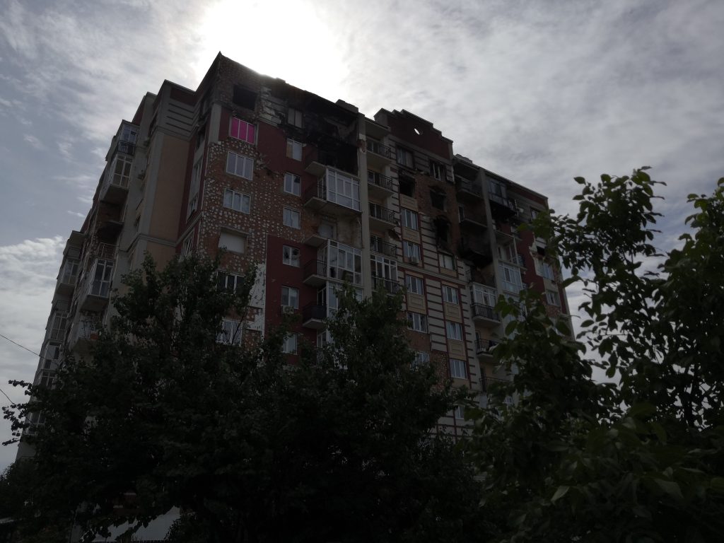 Photo of a building located near the Hostomel Primary Care Center captured with the eyeWitness to Atrocities App by a user on September 9, 2022.