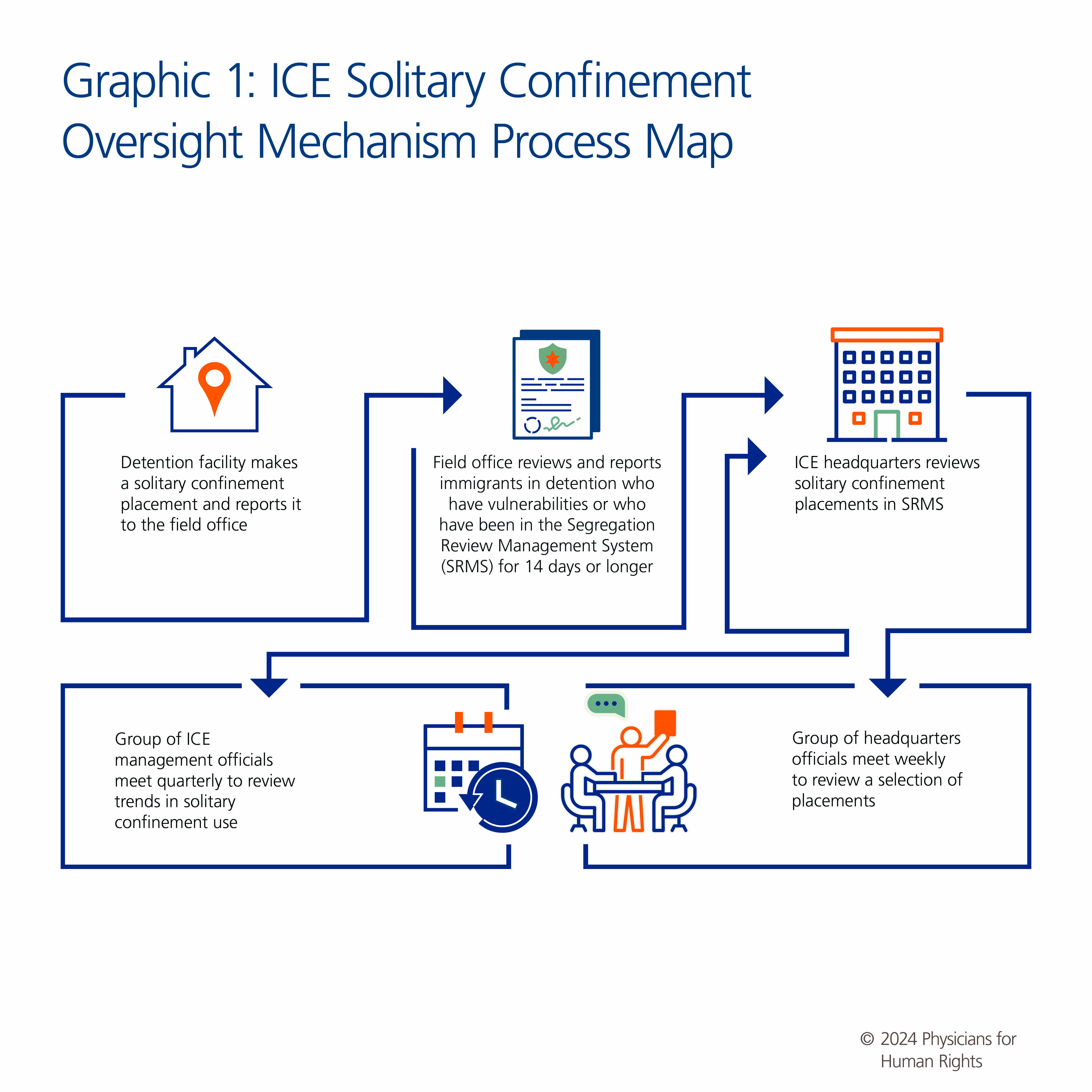 A process map of ICE’s oversight mechanism for solitary confinement, as described in the GAO report, can be seen in Graphic 1, below.[34]