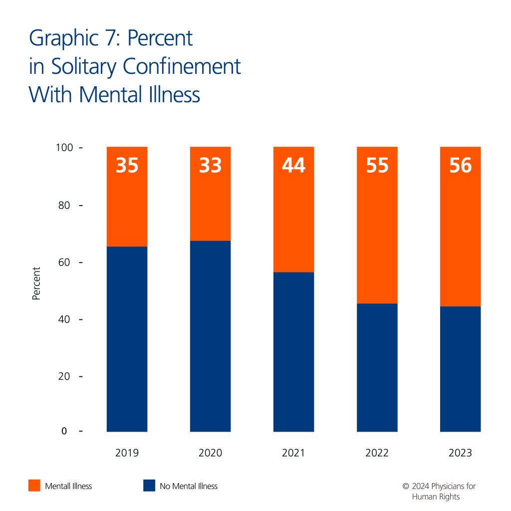 [114] HLS FOIA: Spreadsheet. This percentage is calculated from the number of people in solitary confinement with recorded mental health status.