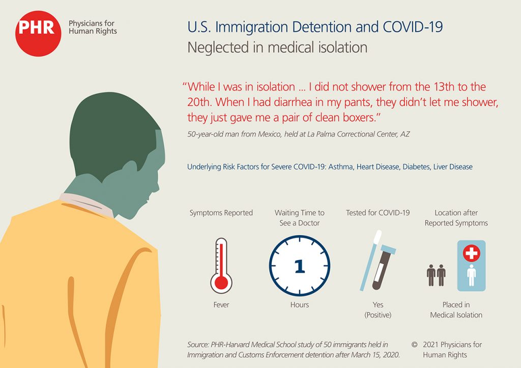 [35] Dr. Amy Zeidan, “ICE is guilty of unsafe practices in detention centers causing COVID-19 to spread,” The Hill, Oct. 5, 2020, thehill.com/opinion/immigration/519589-ice-is-guilty-of-unsafe-practices-in-detention-centers-causing-covid-19; Samara Fox, Ellen Gallagher, and J. Wesley Boyd, “When the treatment is torture: ICE must stop using solitary confinement for Covid-19 quarantine,” Stat News, Aug. 7, 2020, statnews.com/2020/08/07/ice-must-stop-using-solitary-confinement-for-covid-19-quarantine/.