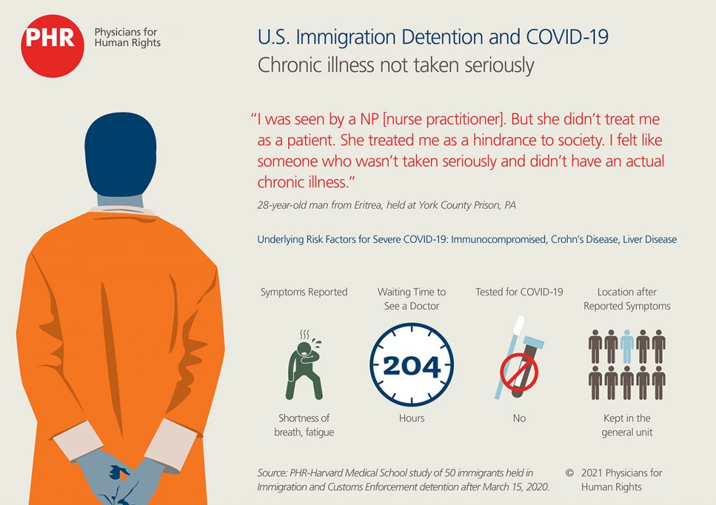 [43] Letter to DHS Inspector General Joseph Cuffari and DHS Officer for Civil Rights and Civil Liberties Cameron Quinn, “RE: Department of Homeland Security (DHS) Office of Inspector General (OIG) report, “Early Experiences with COVID-19 at ICE Detention Facilities,” June 18, 2020 OIG-20-42, July 22, 2020, phr.org/wp-content/uploads/2020/12/PHR_letter_to_DHS_OIG_on_ICE_coronavirus_response.pdf; “Concerns about ICE Detainee Treatment and Care at Four Detention Facilities,” Department of Homeland Security Office of the Inspector General, June 3, 2019, oig.dhs.gov/sites/default/files/assets/2019-06/OIG-19-47-Jun19.pdf.
