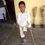 A young victim awaits treatment at the International Red Cross Orthopedic (ICRC) rehabilitation center on December 10, 2009 in Kabul, Afghanistan. (Photo: Majid Saeedi/Getty Images)