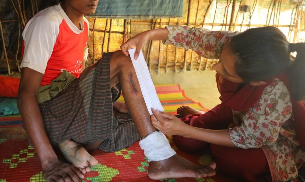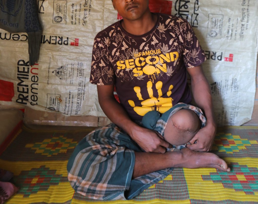 Mohammed Erfan (Profile 1), a 15-year-old, was at home with nine family members in late August 2017 when security forces and civilians began attacking and arresting Rohingya villagers, looting their homes and then burning them down. Erfan suffered a gunshot wound to his upper left arm as he fled toward the forest. He kept running until he lost consciousness. When he regained consciousness, he was alone and saw that his village had been destroyed. He made his way into the forest and eventually met up with an uncle. They spent two months in the forest, too terrified to leave. Eventually they trekked to Bangladesh, where medical personnel immediately referred Erfan to a hospital to have his arm amputated. Since then, his uncle has been reunited with his wife and children, leaving Erfan alone in the camp. Erfan did not know how he would find work or engage in any other productive activity without his left arm, and he appeared to be suffering extreme trauma and abandonment in addition to his physical disability.