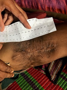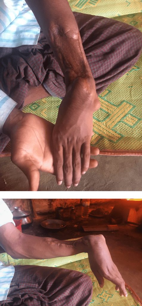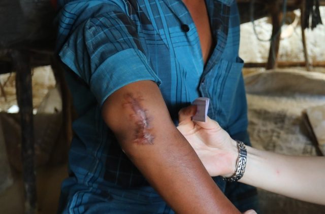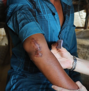 “I feel bad. It is itchy here at my wound. Sometimes I can’t stand it, the itching and the pain. I can move (my arm) a bit at normal times. But when it becomes very painful, I can’t move at all.”
