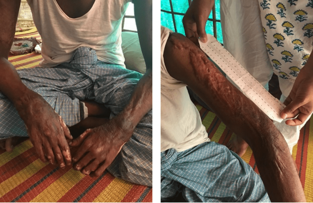 As Monzur Alom and his family fled security forces firing rockets at escaping villagers, something exploded in front of him, instantly killing Alom’s eight-month-old son. The blast inflicted shrapnel wounds and burns that have extensively scarred his right hand and wrist, making it hard for Alom to do any kind of physical labor.