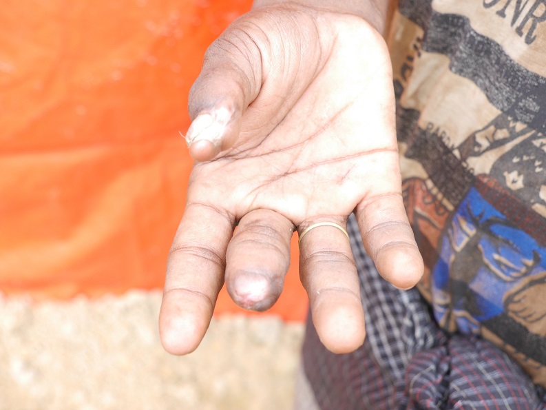“I used to be a hard laborer…. I can’t work now, I can’t even lift the small water pot that is used at the latrine…. I feel so sorry that I can’t use my hand anymore.”