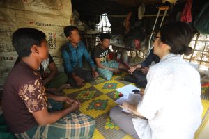 Each assessment began with a semi-structured interview to collect information on the survivor’s demographics and their personal experiences, as well as when they first noted any disturbances in daily life in late August 2017 and how they arrived in their current location. Questions centered on the survivor’s own experiences and witnessed instances of abuse.